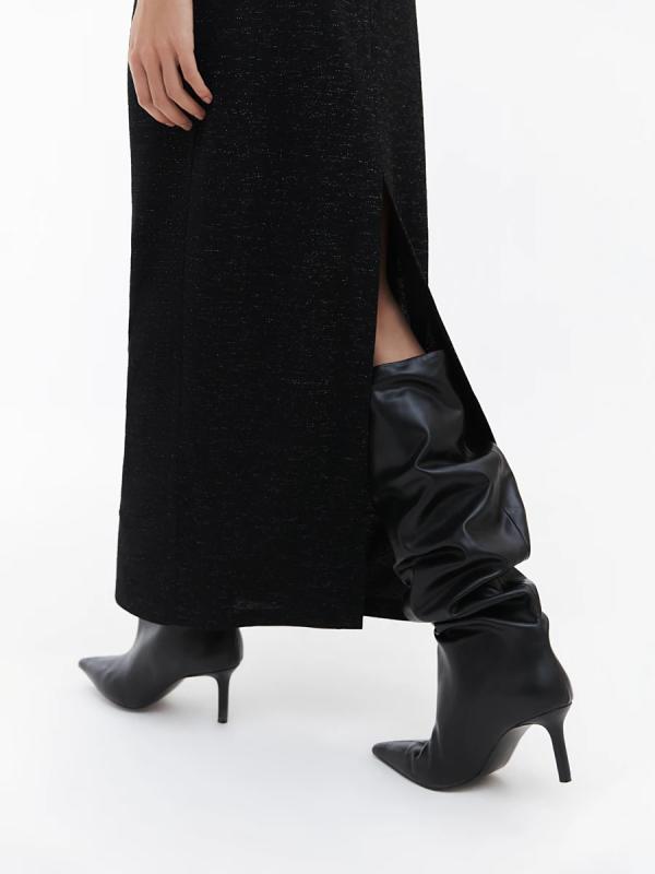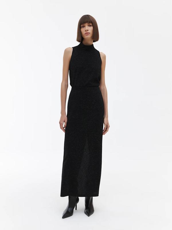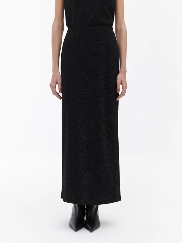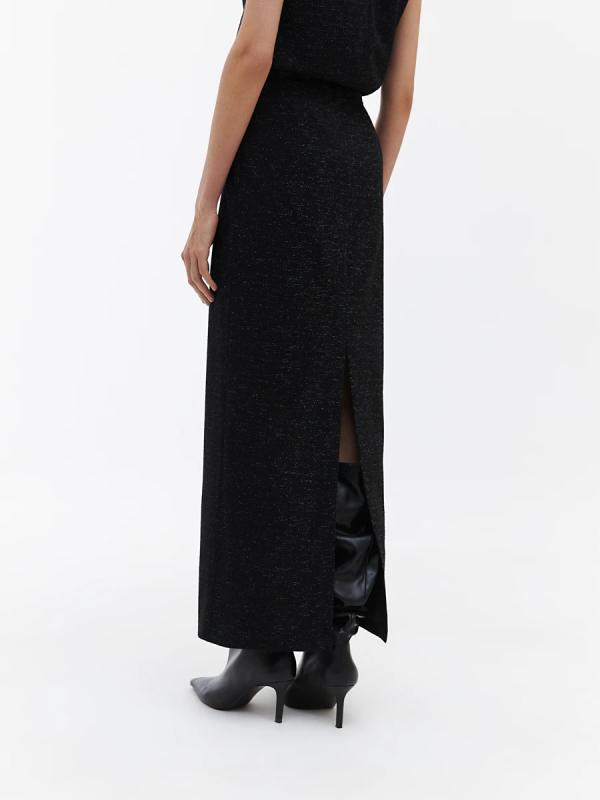 Черная трикотажная юбка длины макси - беспроигрышное сочетание элегантности и женственности. За счет анатомической высокой посадки модель идеально сядет по фигуре и подчеркнет талию. Длина изделия и прямой крой визуально вытягивают силуэт, а акцентный разрез сзади делает образ запоминающимся, хоть и сдержанным. Юбка выполнена из мягкого трикотажа премиального качества. - высокая посадка - длина макси - глубокий разрез сзади - мягкий трикотаж - прямой крой