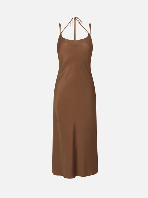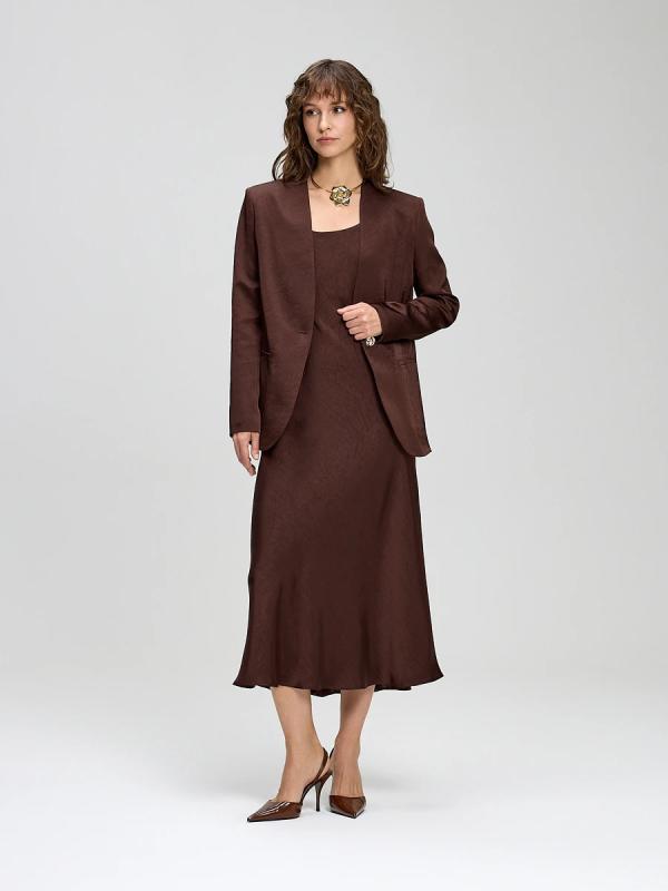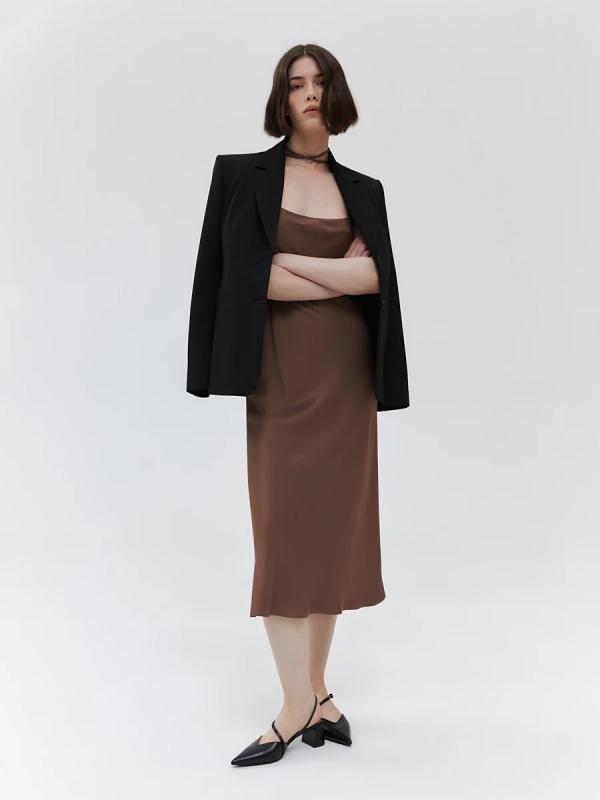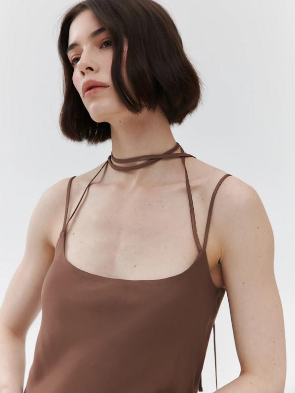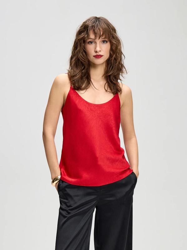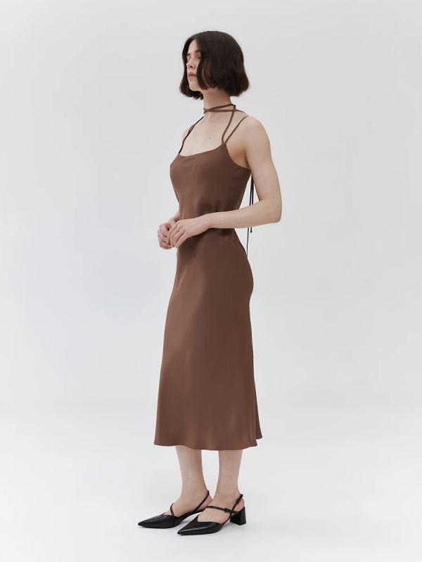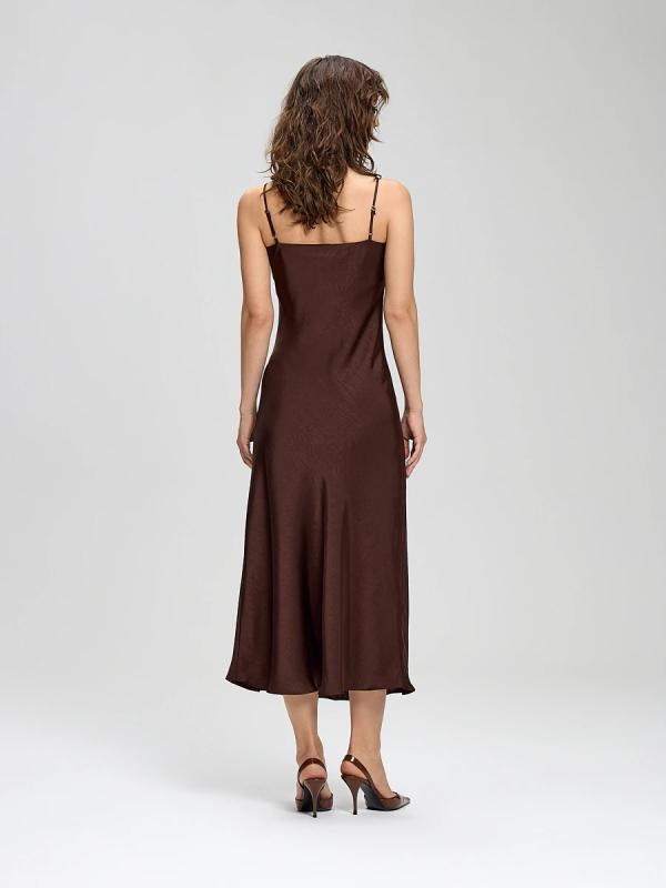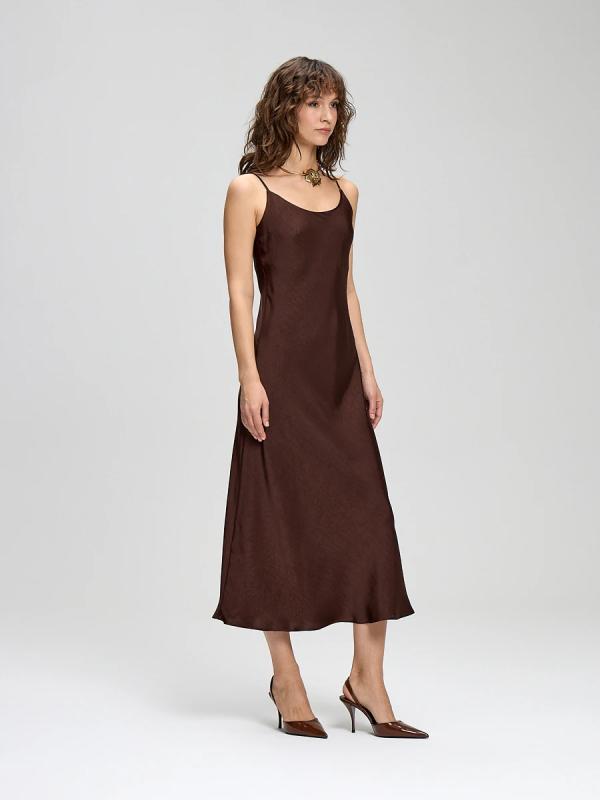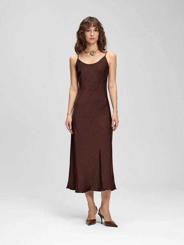Сарафан из экокожи оранжевого цвета.• прилегающий силуэт • длина ниже колена• регулируемые бретели• каре-образная горловина• шлица