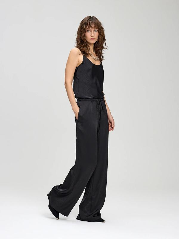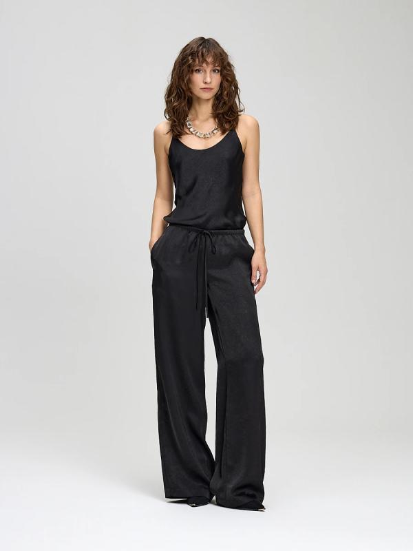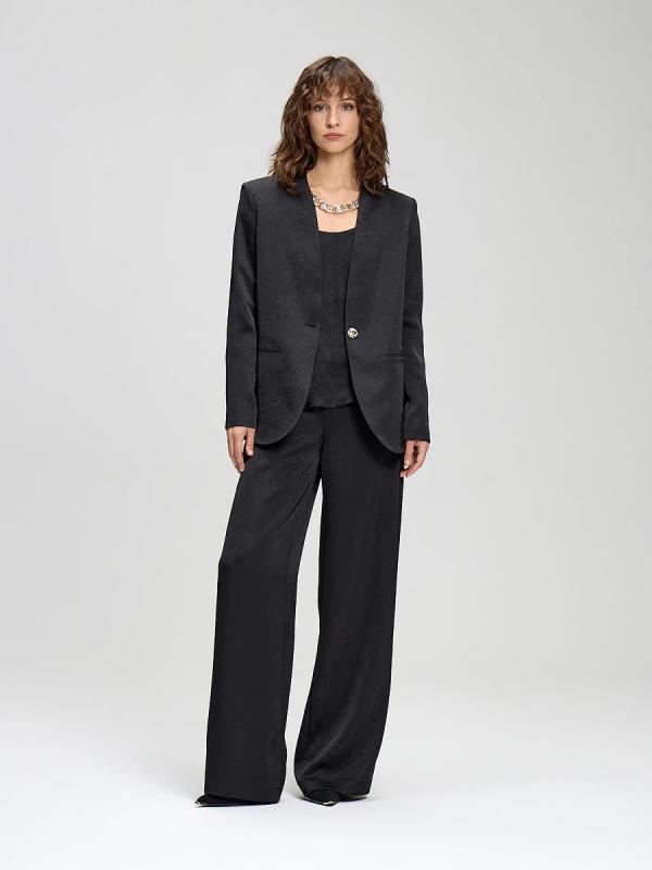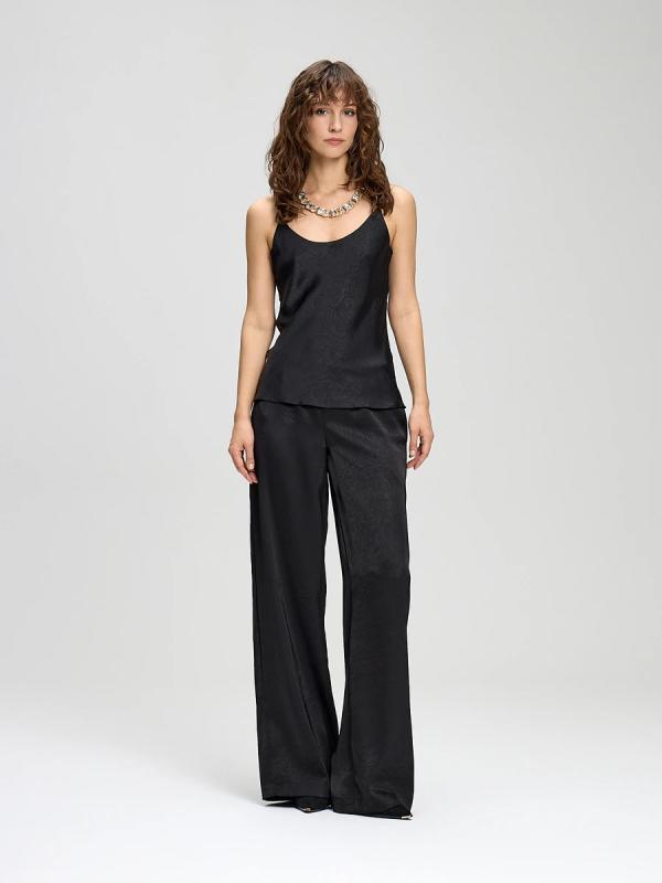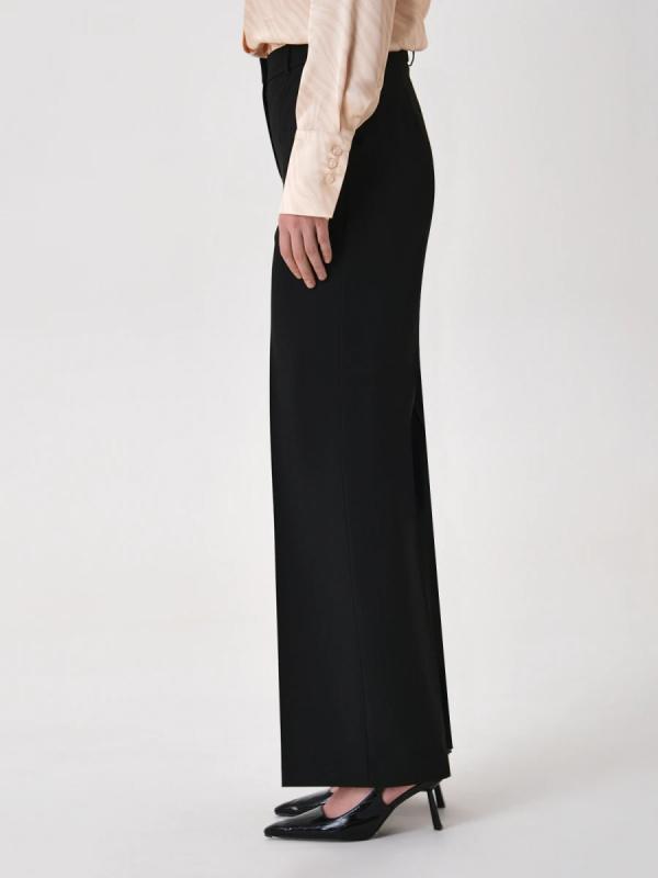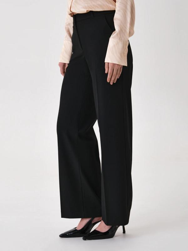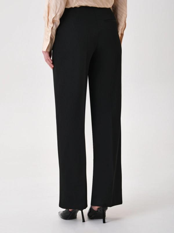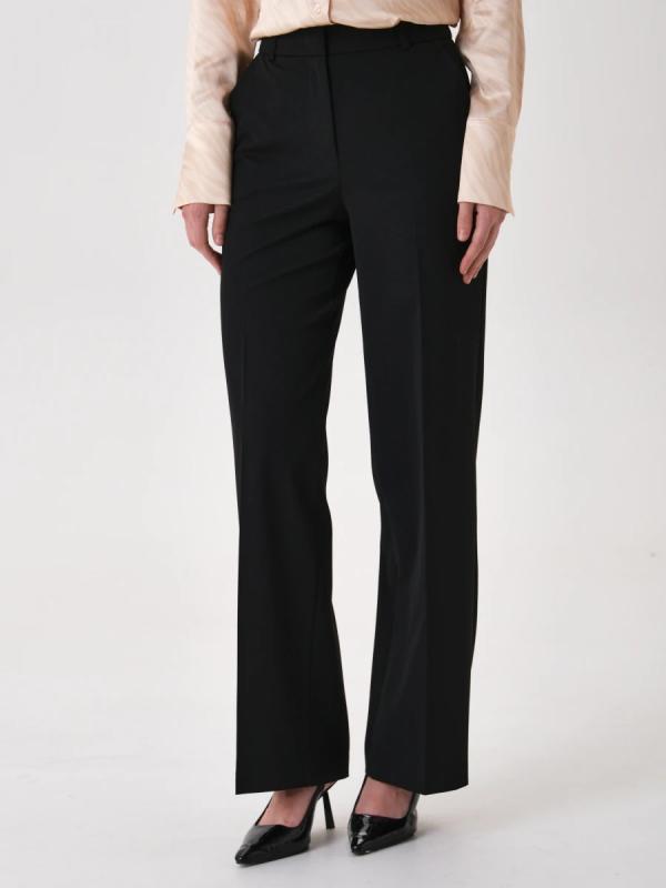 Брюки прямого кроя со стрелками выполнены в универсальном черном цвете. Модель хорошо садится за счет высокой посадки на талии, а полная длина визуально вытягивает силуэт. Вокруг пояса имеются пять шлевок, что дает возможность дополнить образ ремнем. Спереди расположены функциональные карманы, а сзади - имитационные. Застегиваются брюки на потайной крючок, молнию и пуговицу.- полная длина- посадка на талии- функциональные передние карманы- имитация задних карманов- застежка на потайной крючок, молнию и пуговицу