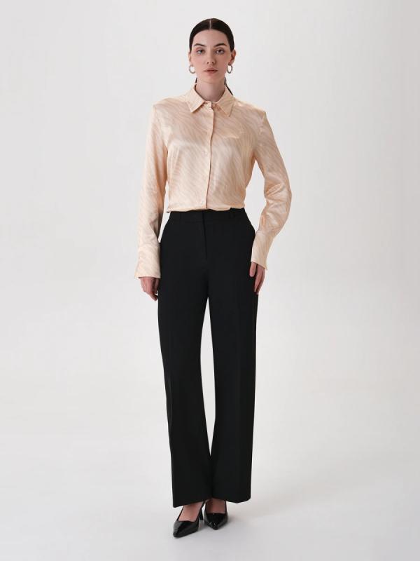 Базовая рубашка прямого силуэта с актуальной формой воротника создает безукоризненный образ и может быть как частью делового гардероба, так и самостоятельным элементом в иных ситуациях. Кокетка на спинке и прорезные петли на цельнокроенной планке подчеркивают фигуру, а фигурная линия низа делает образ чуть более расслабленным.- рукав прямой с притачной манжетой- воротник отложной на отрезной стойке- застегивается на пуговицы и прорезные петли на цельнокроенной планке- фигурная линия низа- по спинке кокетка